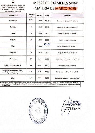 FECHAS MESAS DE EXAMENES REGULARES 2025